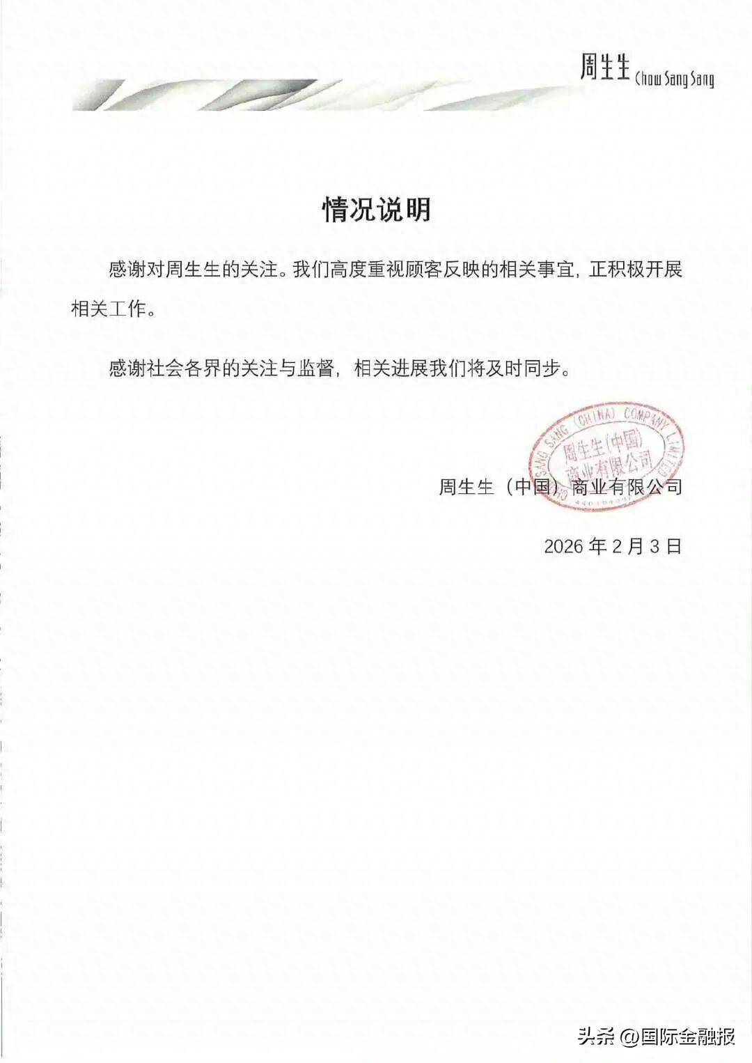 行为国内黄金珠宝头部品牌,周生生这次足金吊坠检测格外事件,已激励行业及消耗者对其居品纯度的质疑,不少网友在酬酢平台留言“难以深信大品牌会出现此类问题”“后续购买足金饰品会愈加严慎”,相干话题眷注度合手续攀升。